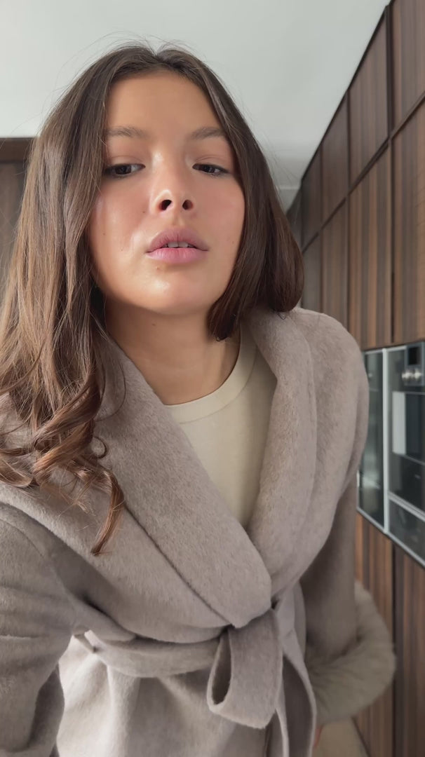 Ce manteau en laine ceinturée offre une coupe équilibrée qui met la silhouette en valeur avec discrétion.